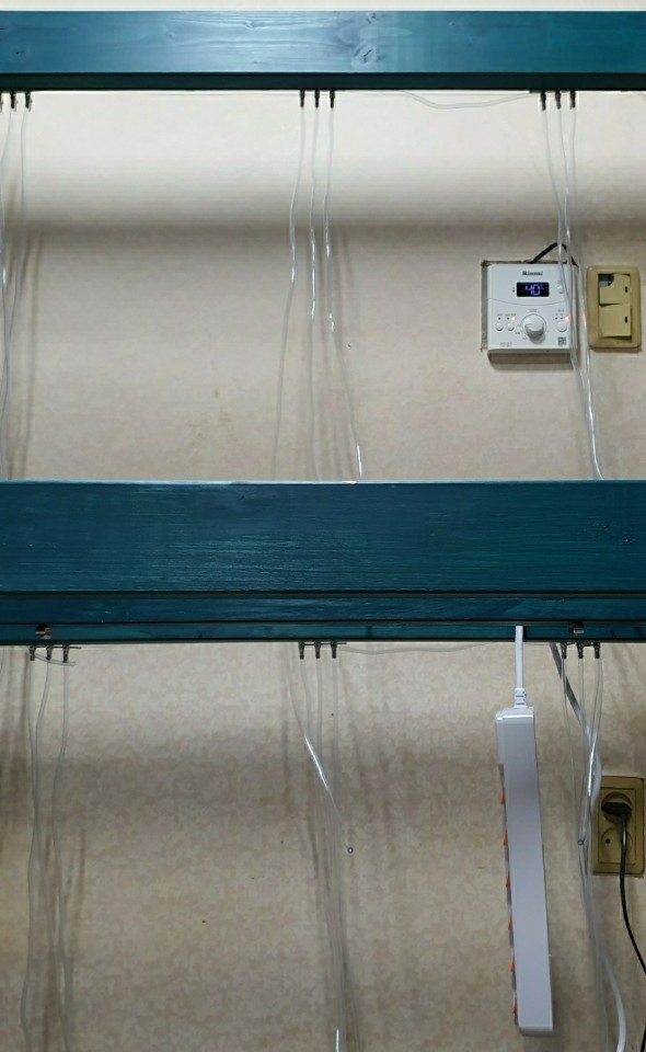 각 층마다 저소음 브로와 10A 짜리로 셋팅을 하다 보니 일단 9개라인만 뽑아서 에어 테스트도 해보고 정상 작동하는 상태를 확인 하여 어항을 들일 준비를 마친 상태입니다.